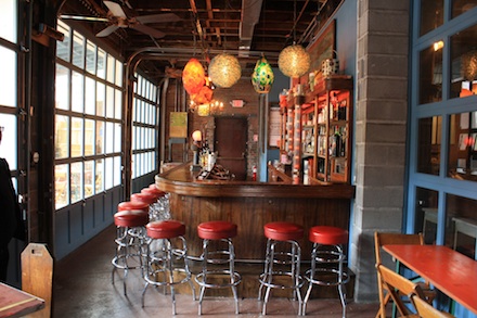 Back Bar347 Warren Street The other coolest new place in town to get a cocktail is the stylish bar/antique shop/café (with food prepared by the kitchen at Zak Pelaccio’s Fish & Game) built in a former auto garage. While you may be experiencing some deja vu, the similarities between Back Bar and Ör end at their description on paper. The feel of Back Bar is all about texture. The collection of high-end antiques and more playful garage-y elements are accentuated by the wall of windows behind the stools, which are, of course, actually the old bay doors of the former gas station and repair shop. The narrow speakeasy vibe when the doors are down creates the impression that you’re in on a secret. Even when the doors are up — revealing the more spacious back patio — you’re still hidden, closer to the narrow alley than to Warren Street. You actually kind of are in on a secret; Back Bar has only a small sign alerting you to the fact that there even is a bar tucked into designer Michael Davis’s 3FortySeven gallery, next to the food truck court, and there’s no website or phone number.The food and cocktails are worth the visit, but it’s the seemingly effortless, cool, multicultural, quasi-industrial style (synonymous with Davis) that creates the memorable experience at Back Bar.
