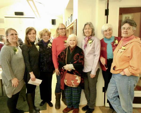 Linda Hursa, owner of Angel's Trumpet Flowers & Gifts, with Deb Gordon and Mike Hursa; Ted Salem, who writes press releases for the New Lebanon library, Paul Rix and Gary Millett.