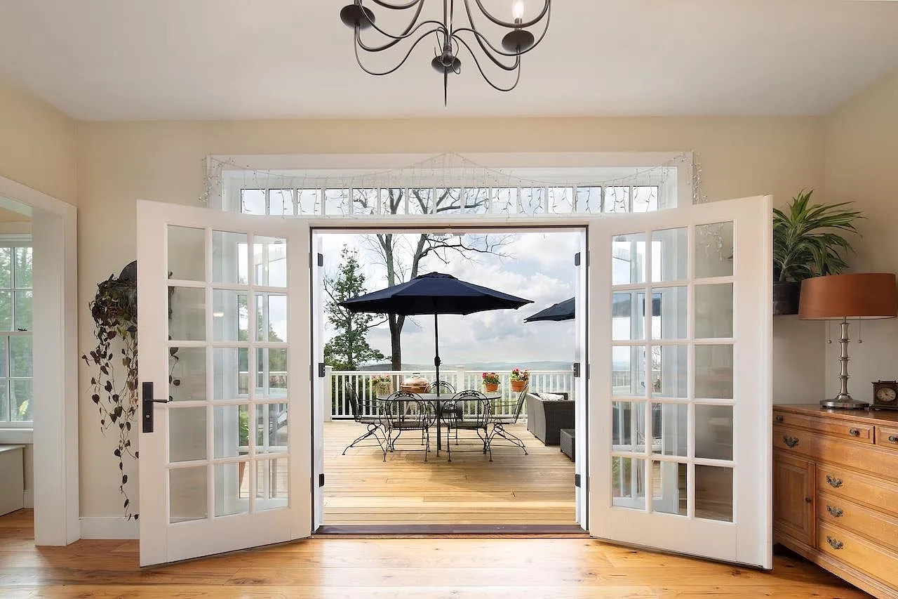 One of this house’s strongest aspects: the wraparound view of the Hudson Valley and Berkshire mountains.