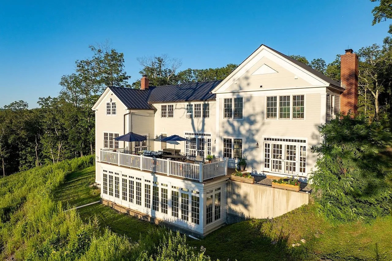 The photos showcase one of this house’s strongest aspects: the wraparound view of the Hudson Valley and Berkshire mountains. 387 Skunks Misery Road is listed $2,495,000 by Elyse Harney Real Estate.