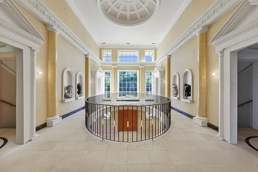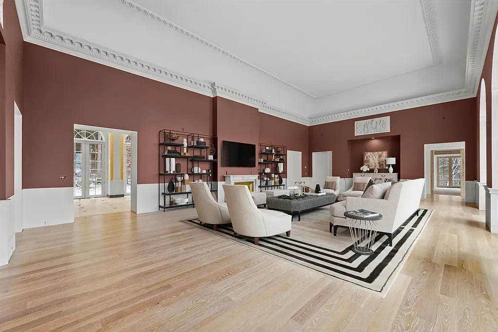 The centerpiece of the estate is a newly constructed French Colonial–style manor designed with commanding proportions, including soaring 19-foot ceilings that prove that, for a select few, the Gilded Age has returned. The residence unfolds across approximately 13,175 square feet with six bedrooms and seven baths and abundant natural light from windows that frame views of the landscape.