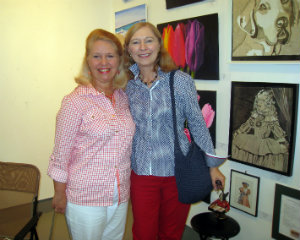 Fay O'Meara, one of the exhibit's artists, with Fran Keeping.