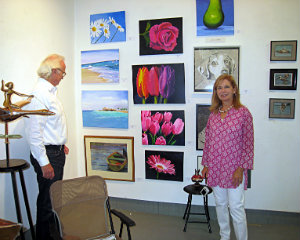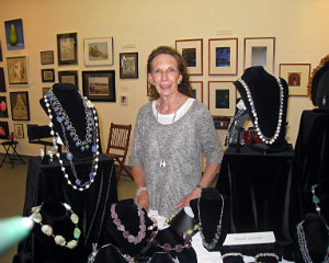 Buzz Peacock and artist Babs Perkins; Janet Marks, a jewelry designer, exhibits her collection.