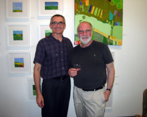 Anita Holmes and Peter Coffeen share wall space; Tom Hlas and Harvey Kimmelman are on hand to discuss their paintings with guests.
