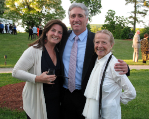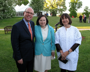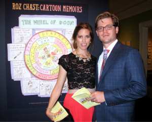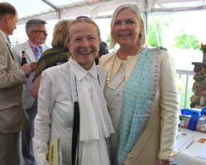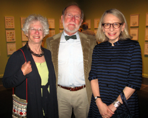 Amy Krzanik reports from Stockbridge. Partygoers flocked to the sold-out spring gala at the Norman Rockwell Museum on Saturday, June 6, which also gave attendees a chance to preview the Museum’s newest exhibit, Roz Chast: Cartoon Memoirs. The charming illustrator was on hand to give a personal tour of the exhibit, along with its curator, Stephanie Plunkett. The four rooms of work by Chast include her cartoons and covers for The New Yorker (dating from 1978) and the entirety of her award-winning graphic memoir, Can’t We Talk About Something More Pleasant?, which intimately and humorously details her parents’ last years. Also featured is original artwork from her children’s books, brightly colored handmade rugs depicting her drawings, and a video interview with the illustrator. Chast, who resides in Ridgefield, CT, discussed the ins and outs of working for a major magazine, taking care of her aging parents, and creating books starring her pet bird, Marco. After cocktails on the terrace, guests moved to the tent for dinner, music from The Sister City Jazz Ambassadors and a live auction with Sotheby’s Priyanka Mathew. Show above, Karen and Werner Gundersheimer with the artist, Roz Chast.