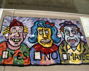 The Museum's Ann Sterlin, Holly Coleman and Lisa Lewis; a hand-made storytelling rug from the exhibit.
