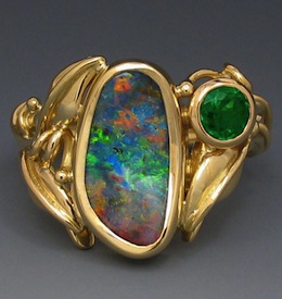 Opal and tsavorite garnet ring.