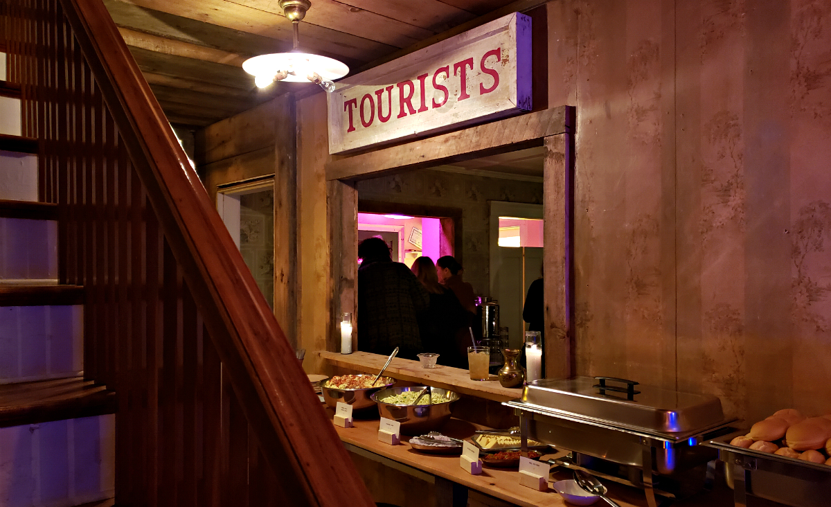 On Friday night, Feb. 15, Tourists, the North Adams hotel that opened this past summer on the site of the old Redwood Motel, debuted The Airport Rooms, its newly refurbished circa 1813 farmhouse that will now serve as a restaurant/lounge space. The private party gave friends a chance to sip cocktails, enjoy snacks from the site’s new chef, Greg Thomas, and tour the building. Downstairs spaces include small and large lounge areas, café tables and a communal table for dining or drink sipping. Upstairs dining rooms are available for evening rentals, holding around 10 people each, and benefiting from in–house food service. The vibe is decidedly historic farmhouse, with walls stripped down to their roots, vintage glassware, velvet fainting couches and farm tables existing comfortably with updated mood lighting and Tourists’ own soundtrack piped into each room. Founded by music-lovers, including Wilco bassist John Stirratt, Tourists frequently hosts live performances, and this evening featured a set from Folk Uke (Cathy Guthrie and Amy Nelson) with a guest appearance by John Doe. Lodgers and locals alike will be able to experience The Airport Rooms for themselves beginning Friday, Feb. 22 at 5 p.m.