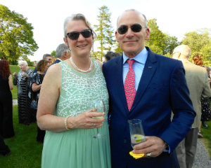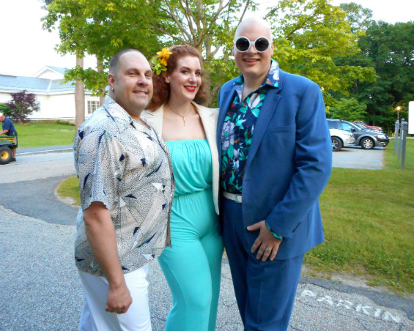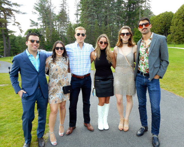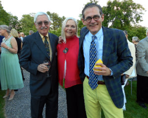 Lisa Green reports from Stockbridge. The Norman Rockwell Museum’s annual gala, “Legends,” on Saturday, June 10, just may have attracted the best-dressed crowd of the season — at least so far. Many of the guests were inspired to take a page out of '60s and '70s fashion, and here’s why: The summer exhibit, “Inventing America: Rockwell & Warhol” examines each of those artist’s roots in the world of commercial illustration. To discover what these two American icons of the art world shared, we encourage you to visit the exhibit, but there was another common element: family members of both artists were at the gala — and, in fact, James Warhola (an artist whose work is included in the exhibit) and Rockwell grandson Geoffrey Rockwell were honorary co-chairs of the evening. The traditional cocktails-and-dinner format was followed by a dance party in the Studio 54 disco that was recreated on the museum’s grounds in homage to Warhol. The after-party was open to the community and the invitation to dress up was enthusiastically accepted. [Above, Trustee John Hyson, museum director and CEO Laurie Norton Moffatt and former trustee Hans Morris.]
