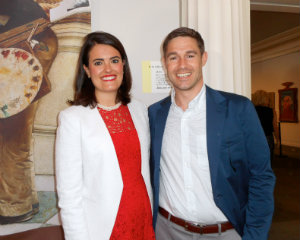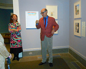 Dr. Justin Wernick and Nancy Kalodner, now at Cohen + White Associates; At the exhibition preview, James Warhola talks about his uncle, Andy Warhol, while the museum's chief curator, Stephanie Plunkett, looks on.