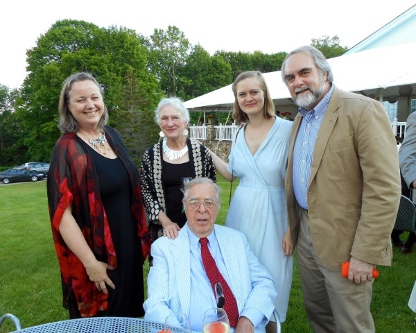 Three generations of Rockwells: Margaret and Geoffrey Rockwell (grandson of Norman Rockwell) flank the seated Jarvis Rockwell (Norman Rockwell's son), Jarvis's wife, Nova, and Geoffrey's daughter, Alethea Rockwell.