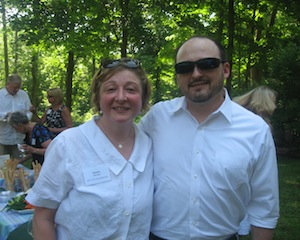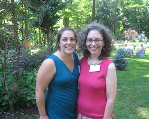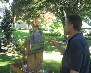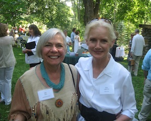 Rachel Louchen reports from Harwinton. The Northwest Connecticut Arts Council is a non-profit dedicated to promoting arts and culture in the 25-town region, so it was fitting that its annual party featured artists painting on site and numerous musical performances on grounds that are themselves a work of art. On Saturday, July 12, the Council hosted the third annual Garden Party at Victoria Elliot and Dr. Marvin McMillen's home garden with its carefully cultivated flora and fauna as well as fountains, sculptures and intricate shrubbery. Surrounded by all this creative inspiration, local plein air painters used the beauty of the gardens to create their own interpretation of the environment, much to the enjoyment of guests watching the artists at work. There were also multiple musical performances located throughout the garden, hors d'oeuvres served and a tented area where guests were encouraged to purchase artwork. The popular event proved successful again this year, with the strong turnout of supporters and artistic members of the community proving how important the arts in our region are. Above, Executive Director Amy Wynn with Event Coordinator Jessica Morozowich.