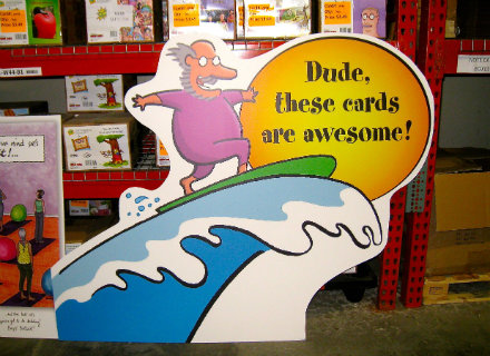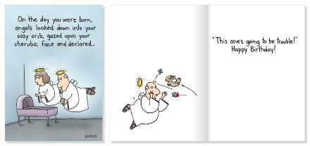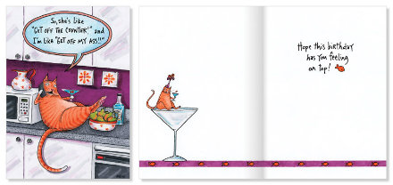The creative process starts with the written word, and what the team is voting on — while laughing hysterically — are the concepts submitted by freelance writers. After they agree they’re going to buy a concept, they start thinking about the appropriate image for the copy. Nancy assigns the job to one in her stable of illustrators, some of whom have been working with Oatmeal Studios since Oatmeal-the-rabbit days. Sometimes an illustrator will submit the whole package — graphics and copy, which are tweaked into the final product. The company averages about 70 new cards a year, and there are bestsellers that have been in the line for years. Crane does the designs for the newer line of photo cards herself. “We stick to humor," says Gallagher “We don’t do seasonal cards, and some are more risqué than others. Some of our retails don’t want anything to do with them." But with 300 designs in the line, there’s plenty for every kind of retailer to choose from.