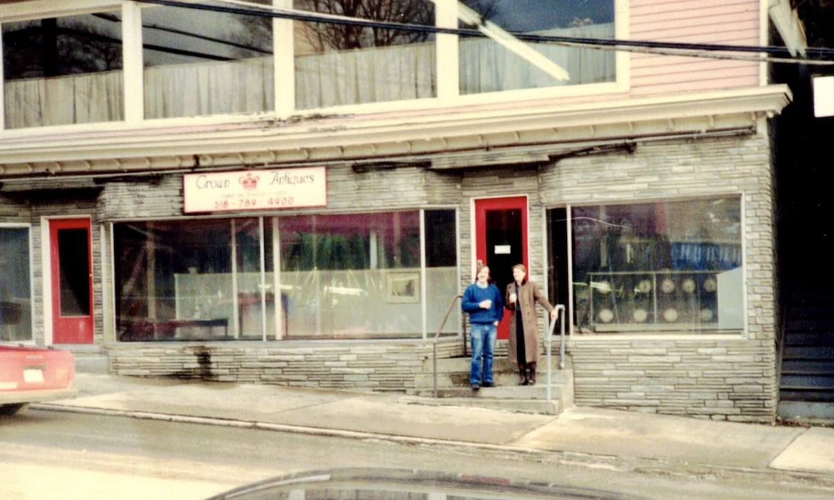 Dick Hermans and Holly Nelson take their first picture in front of the future home of Oblong Books in 1975. Picture courtesy of Oblong Books.