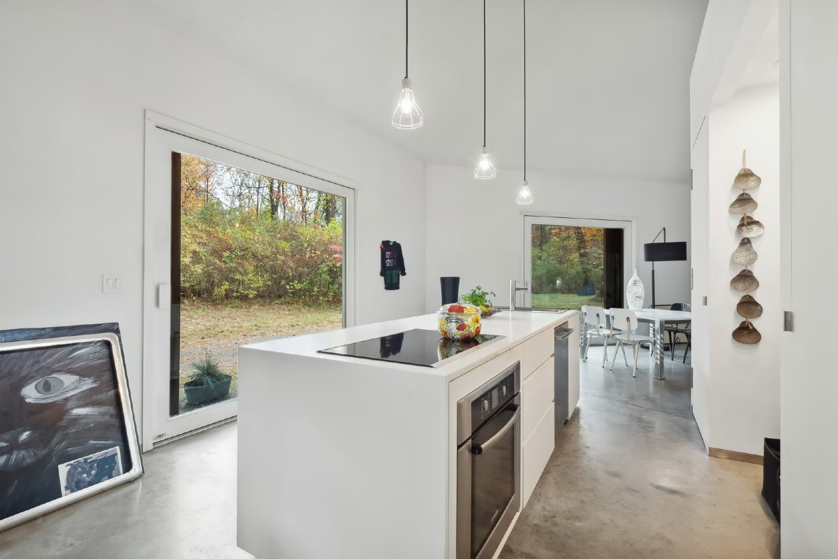 Built in 2018, a one-of-a-kind, 1,700-square-foot octagonal contemporary barn home in Hillsdale was conceived and built by an architect. It boasts huge picture windows, a soaring ceiling crowned by a cupola, radiant-heat polished concrete floors and a floating propoane-fired fireplace. It has two bedrooms and two bathrooms and a designer kitchen. Listed at $1,335,000 by William Pitt Julia B Fee Sotheby's International Realty.