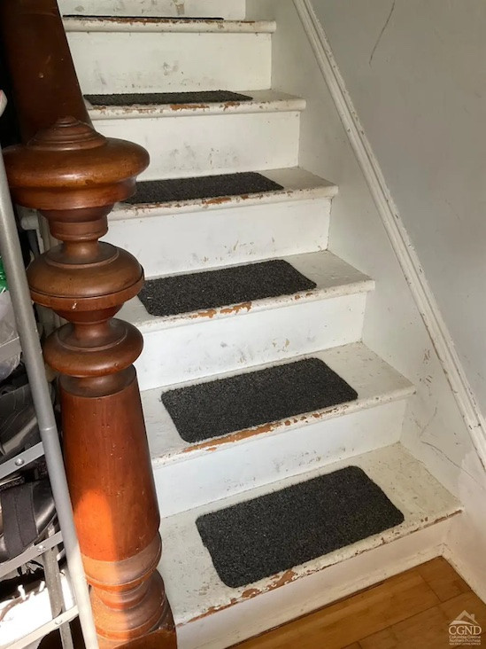 In Stuyvesant, an 1870 farmhouse has an updated first floor, with a new kitchen, living room, dining room and bathroom. The second floor has been gutted with four large bedrooms and an unfinished bathroom. Some original features are still intact: the front door, stairs and banister. A carriage house on the property is falling down. Listed at $174,5000 by Coldwell Banker.