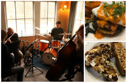 Daryl’s House It’s no coincidence that music (bluegrass, blues, jazz or gospel) is on the brunch menu here every Saturday and Sunday, considering the owner is Daryl Hall of Hall & Oates fame. Top touring and regional acts are on stage while you dine, such as on a recent snowy Saturday when I had the great fortune to hear two sets by the banjoist Hubby Jenkins from the Carolina Chocolate Drops. This club, with its rustic and open feel, also takes good care of your tastebuds. Fried chicken and waffles, brioche French toast, and the crabmeat and avocado omelette are fan favorites. Or you can sink your teeth into a burger or fish and chips. Brunch hours: Saturday & Sunday, 11 a.m.-3 p.m., music noon-2:30 p.m. 130 Route 22, Pawling, NY (845) 289-0185 The Rhinecliff Hotel Sunday jazz brunch here goes back to 2008, when this haven alongside the Hudson (and an Amtrak station) re-opened after a thorough restoration. Look forward to a casual and fun atmosphere. The full English breakfast is hard to find anywhere else in the area — sausages, bacon, blood pudding and all — and is a testament to owners James and David Chapman, brothers from across The Pond. Or try the Timbuktu, a simple cheesy hash with onion and tomato topped with a fried egg. Their prix fixe includes juice; choice of mimosa, Bloody Mary or Prosecco; any brunch dish; and coffee or tea. You’ll hear straight-ahead jazz, often from small groups led by Bard professors or a vocalist like Elaine Rachlin. Brunch Hours: Sunday 11 a.m.-3 p.m., music 11:30 a.m.-2:30 p.m. 4 Grinnell St., Rhinecliff, NY (845) 876-0590 Two newcomers to musical brunching are also worth mentioning. Both present music on a more seasonal schedule: J&J’s Gourmet Café