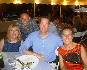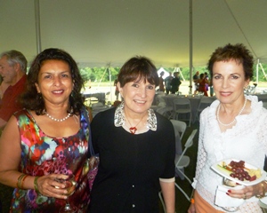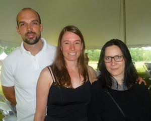 Sarah Todd reports from Ghent.Tucked away amidst the rolling farmlands and firefly-lit trees of Columbia County, OMI International Arts Center is a place where global creativity meets rural charm. On Saturday, July 13, the arts nonprofit kicked off a vibrant weekend in celebration of the 31 visual artists gathered for its international residency program. Guests toured artists' studios in OMI's converted barns, stopping to admire imaginative creations like a row of gently hopping ferns by Japanese-American artist Kazumi Tanaka. Afterward, party-goers fortified themselves with mahi-mahi, apple-glazed pork loin, forbidden rice, and curried tofu before kicking off their shoes and dancing the night away to the Latin-Afro-Caribbean beats of Brooklyn band Cumbiagra. Artists from Israel, Belgium, India, and Barbados mingled with supporters and staff like Art Omi director Claudia Cannizzaro (left, with fellow OMI workers Nicole Hayes and Carina Kaufman). Many a proud OMI fan mentioned that Rural Intelligence named last year's bash one of the top parties of 2012. This year's only half over, but the odds of a winning streak are looking pretty good.