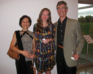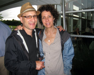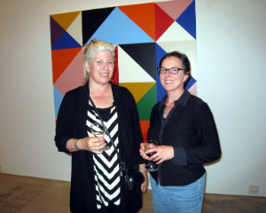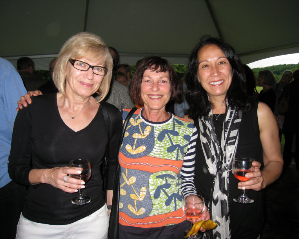 Lisa Green reports from Ghent. "Is this not a gorgeous room?" Omi International Arts Center Director Ruth Adams asked the sizable crowd standing amid the larger-than-life geometric wall paintings by artist Stephen Westfall. Applauding in agreement, the locals and weekenders who came to the Center for the Fields Sculpture Park & Architecture OMI season opening cocktail party and preview on Friday, June 13 admired the artist’s work and raved about the “local bites" prepared by Chefs Rita Soares-Kern and Robin McKay. It was an evening when creatives of all kinds came out of their studios, galleries and workshops to reconnect (“the person standing next to you is probably an artist," Westfall said in a brief talk), and for the center to introduce this year’s group of resident artists. [Above, Stephen Westfall and Ruth Adams.]