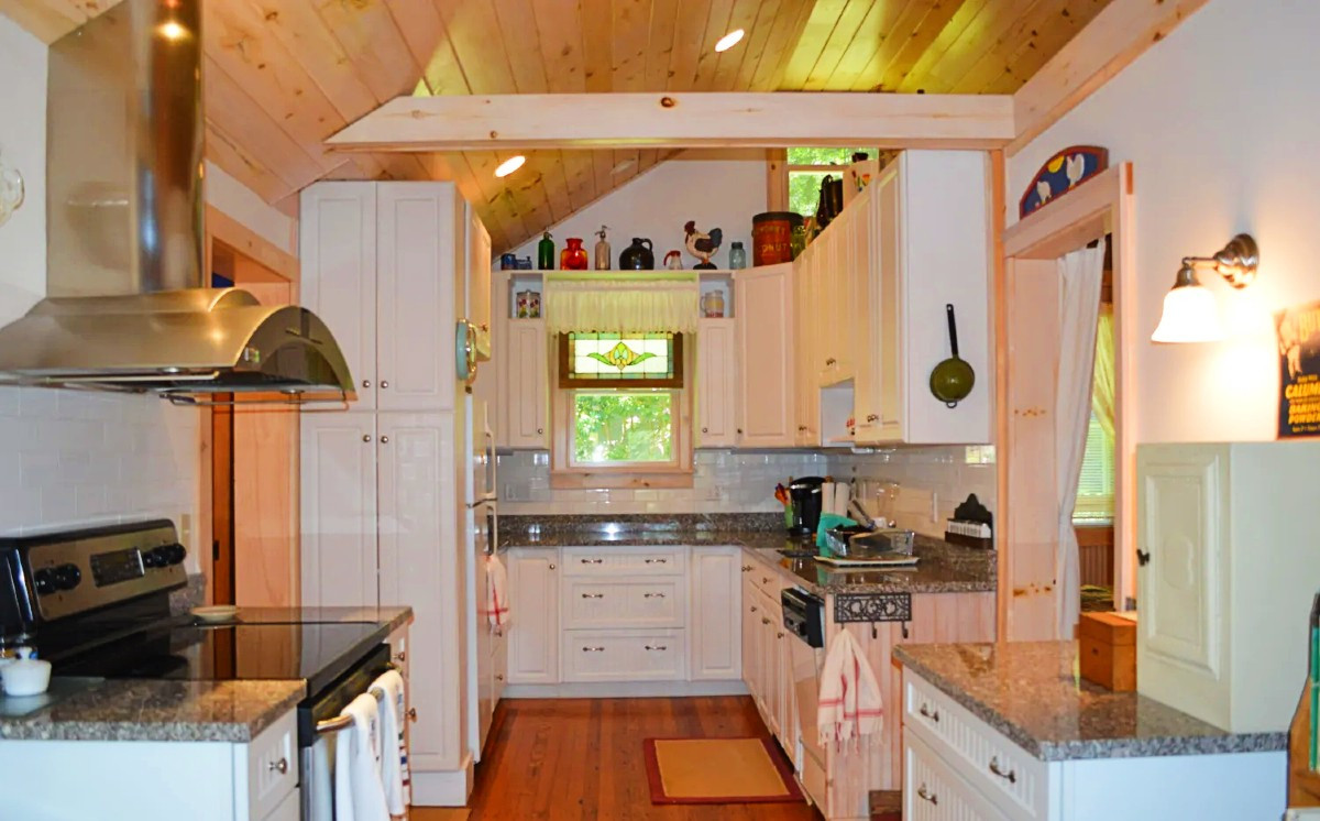 Right on the water, this 1,833-square-foot cottage in Becket has two bedrooms and two bathrooms, plus a bunk house for extra space. There's a dock in place for power boats, kayaks and swimming. The house is also surrounded by mature gardens and landscaping. Listed at $679,000 by Red Horse Real Estate.
