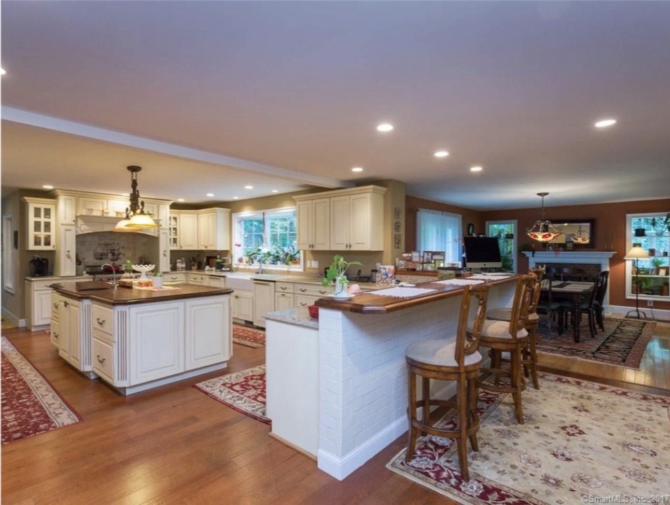 On three acres, this home in West Cornwall has five bedrooms (including the two master bedroom suites), three full baths and two half baths. The living room has a vaulted ceiling and French doors leading to the back yard. The kitchen offers granite countertops, two dishwashers, a Sub Zero refrigerator, Viking gas range and hood, wet bar and wine cooler, a huge pantry and a separate laundry room. Listed for $698,000 by Best & Cavallero.