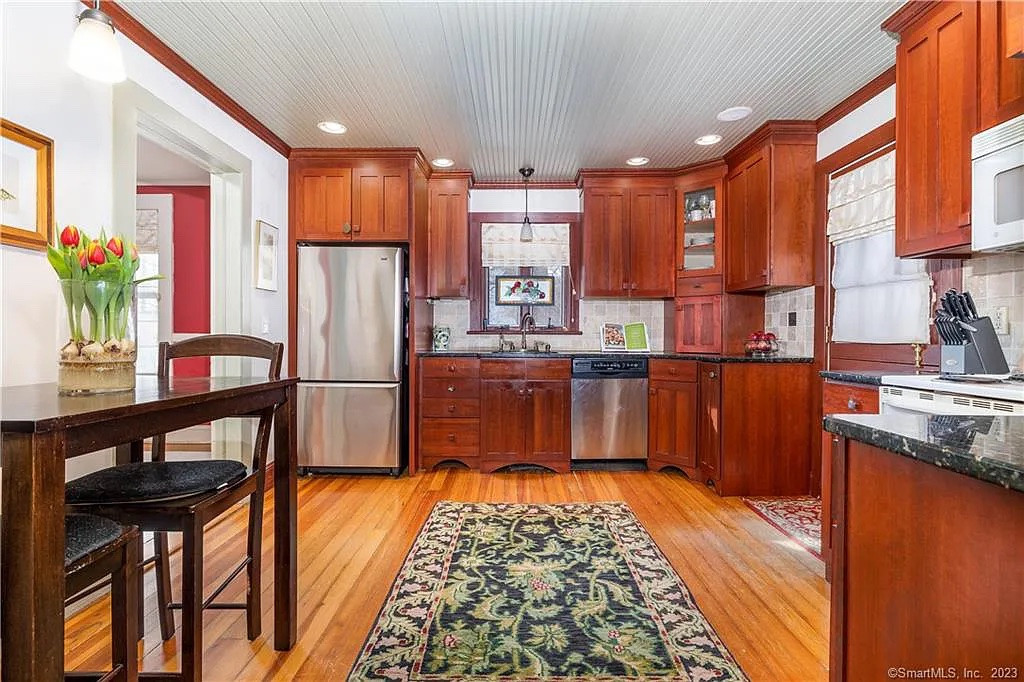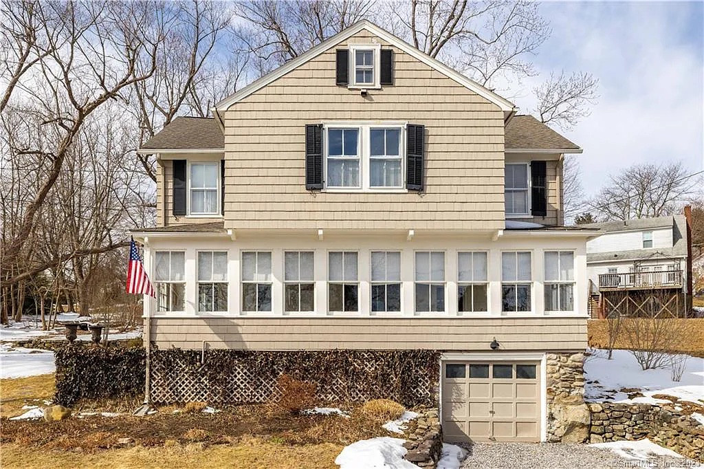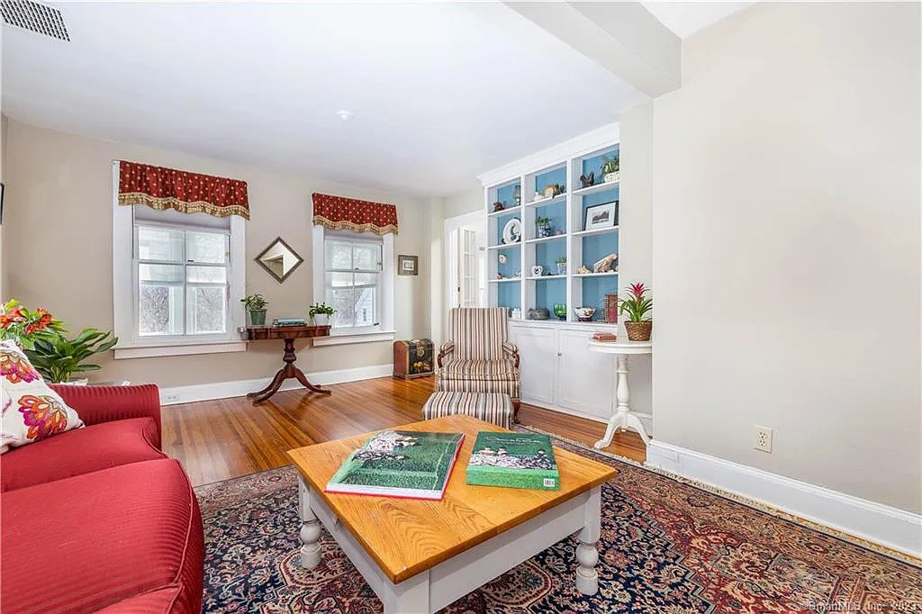 A "classic home" in Litchfield near the Litchfield Green offers four bedrooms and two bathrooms. There is a sun-filled enclosed porch, a kitchen with granite countertops and shiplap ceiling, a living room with built-in cabinets and a den. Hardwood flooring runs throughout the home. Outside is a large deck and perennial gardens. Listed at $385,000 by William Pitt Sotheby's International Realty.