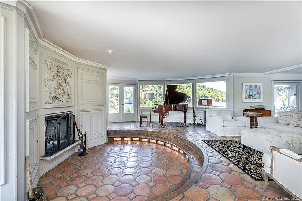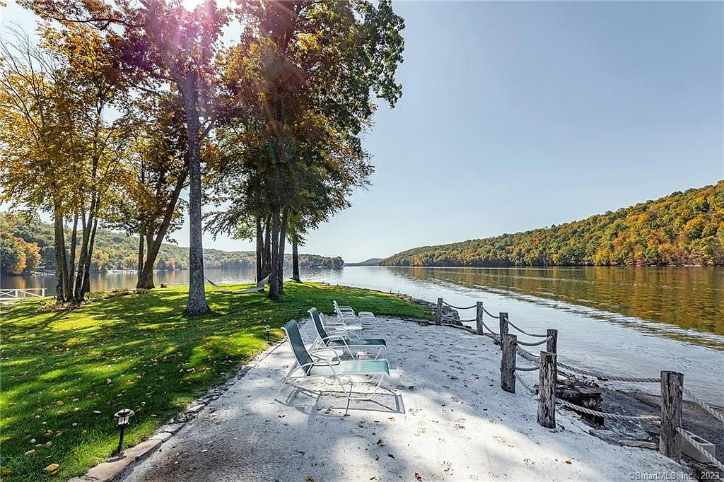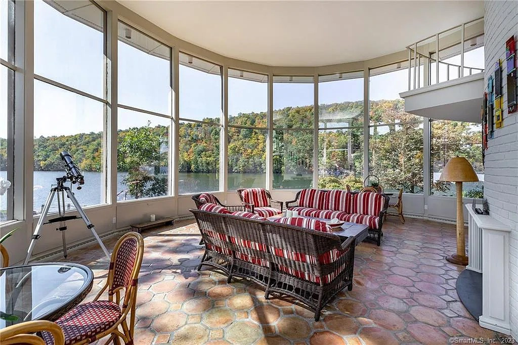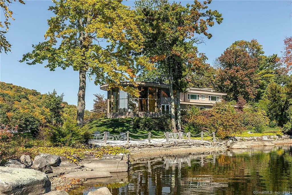A New Milford home is surrounded by water on three sides with lake views from every room.