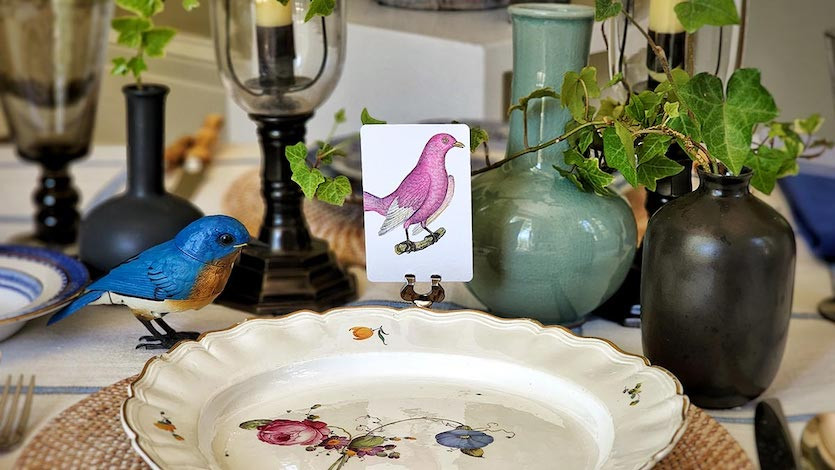 The illustrated place cards are custom made with fanciful images and optional digital calligraphy on the back. “They bring people to the table literally and metaphorically,” Suen-Cooper continues. “They create a place for your guest and say ‘welcome to our home.’” The Coopers hear from clients that their guests often take the place cards home as mementos of a special evening, or to use as a bookmark — a reminder of the connection that was sparked across a dinner table.