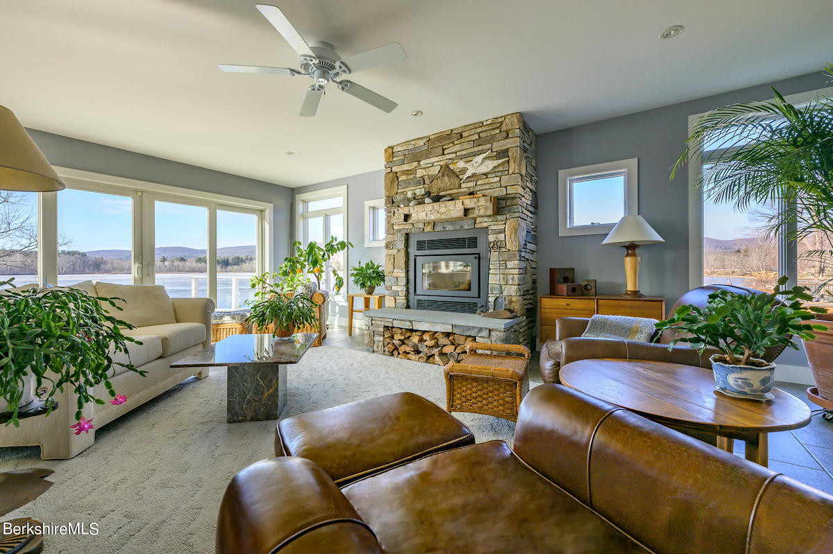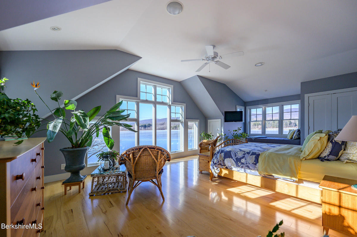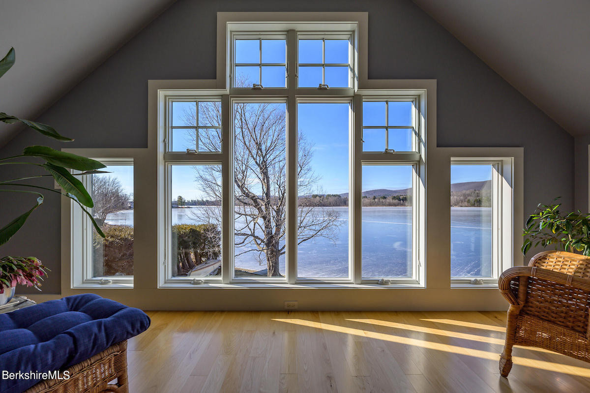 This house comes with a view across Onota Lake in Pittsfield to protected land and mountains beyond. There are three bedrooms and two bathrooms with their own magnificent views. Built in 2014, the Contemporary house offers a gourmet kitchen, stone fireplace, large deck and heated two-car garage with a workshop. Listed at $1,050,000 by Stone House Properties.