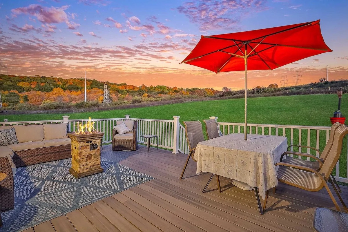 Built in 2020, this ranch home in Milan offers three bedrooms and two bathrooms, and open concept living, kitchen and dining areas. You'll see sunsets and sunrises from the deck. The walk-out basement has high ceilings and lots of light. The home on 4.3 acres is just minutes from the Taconic State Parkway and close to the Villages of Rhinebeck and Red Hook. Listed at $539,900 by Exp Realty.