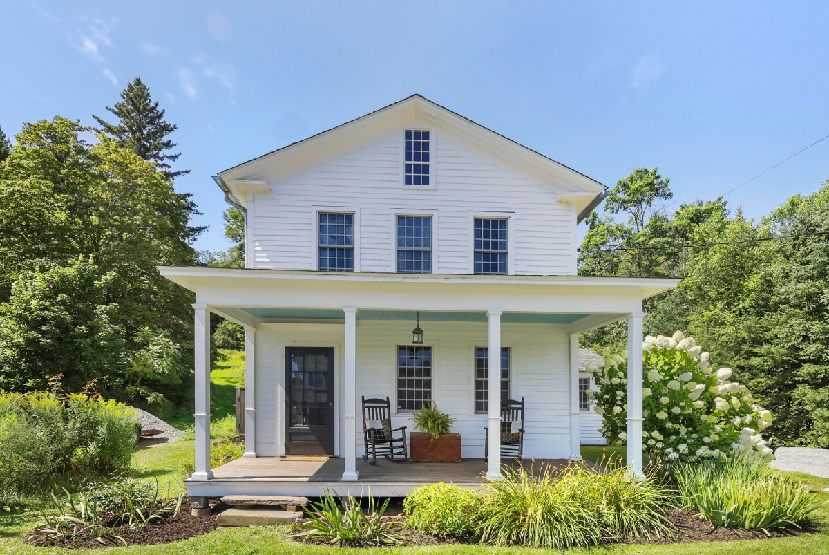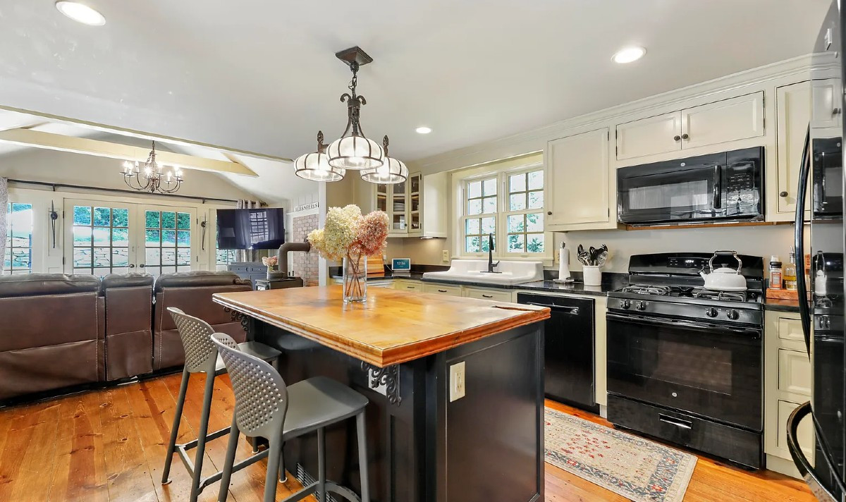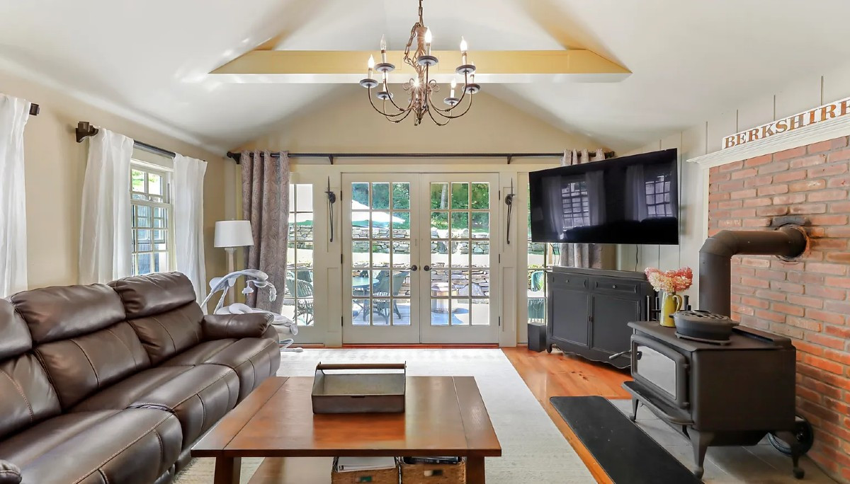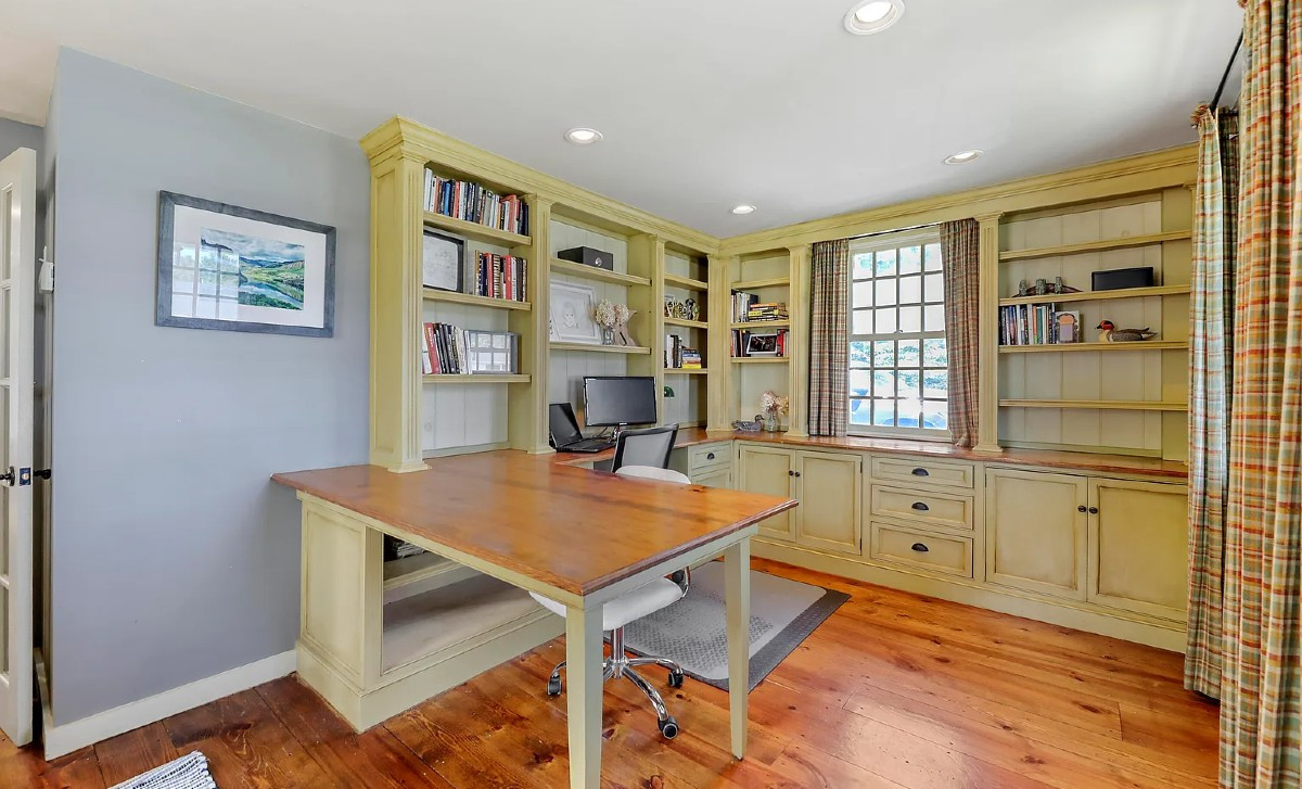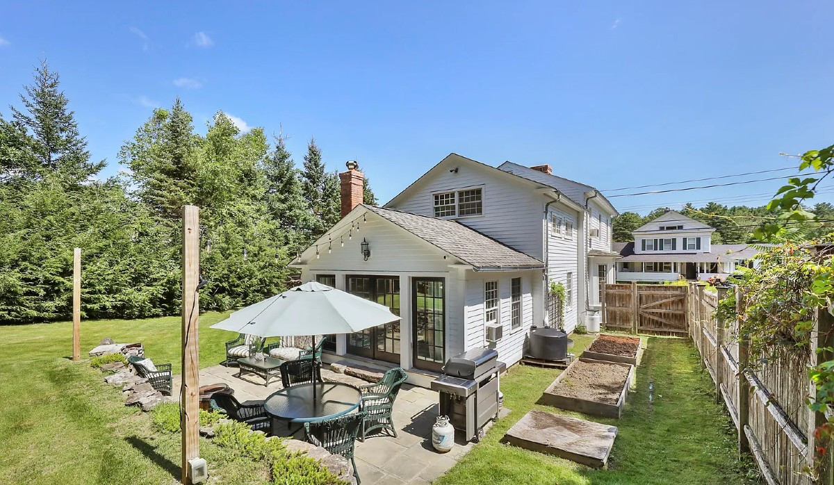 Built in 1812, this farmhouse in Otis maintains its historic character with modern amenities and custom details. The living room offers a Rumford fireplace, custom cabinetry and wood flooring throughout. The open kitchen features an antique farm sink, soapstone counters and a walk-in pantry. There are two bedrooms and two bathrooms. The great room overlooks a bluestone patio. Listed at $439,000 by MacCaro Real Estate.