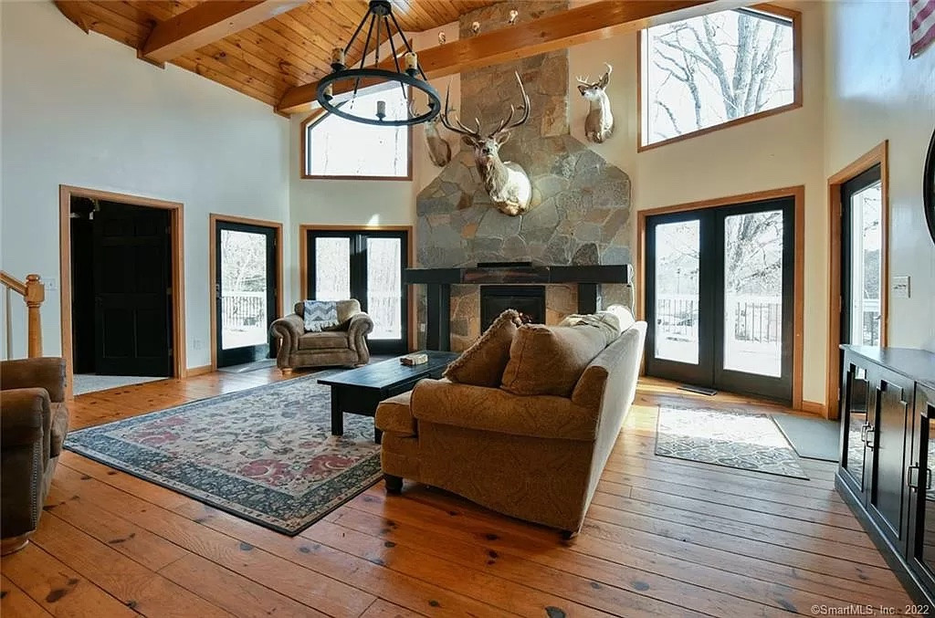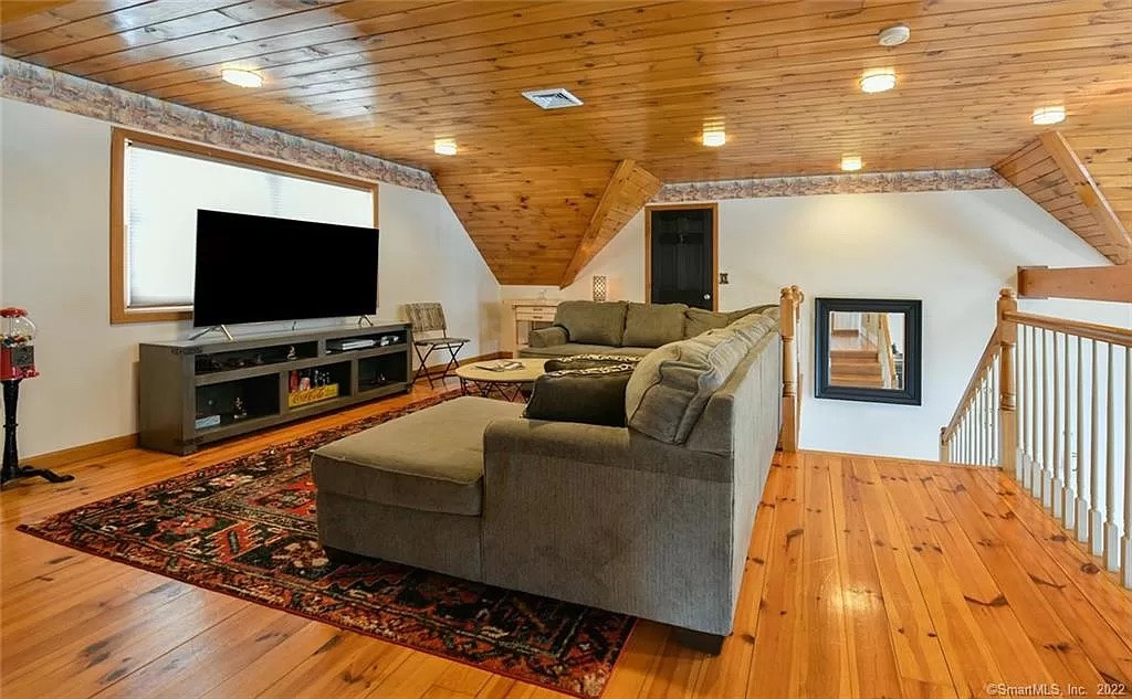 Situated on a cul-de-sac, this large Cape-style home in Bethlehem has three bedrooms and three bathrooms, a floor-to-ceiling stone mantel and high ceilings. Multiple doors lead to a deck that provides lake views. A loft area can be used as a family room or bonus bedroom. The partially finished lower level provides an in-law apartment. The property comes with lake rights with the beach. Listed at $565,000 by Regency Real Estate.