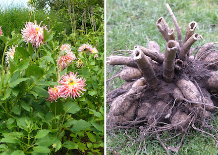 What a week to be in the Rural Intelligence region. The colors, the weather, the sunsets — it’s just too much to put into words, so I’m not going to try. If you’re here, you know. But don’t be fooled — those cold temperatures are going to be here before you know it and you don’t want to be caught off guard. For the past couple of weeks here at the Berkshire Botanical Garden, we've been bringing in all of the non-hardy and tropical plants that we overwinter in the greenhouses. I realize that most of us aren’t lucky enough to have a greenhouse, but that doesn’t mean that you can’t overwinter some of your non-hardy plants in your home with success and ease. Dahlias [in before-and-after photos above] are a perfect example. Long loved for their large, colorful blooms, dahlias are available in an abundance of varieties and colors. Unfortunately, dahlias can’t survive through our rough New England winters. However, they're so easy to store that they're worth the effort. Here’s what you do: After the first frost or when the plant starts to blacken, cut it back to about four inches above the soil line. Then, with a fork or spade, gently lift the roots out of the ground. These are tuberous plants and you will most likely see the eyes of new growth on the roots. Carefully remove the soil from around the roots and then, if you want to divide them, do so now, making sure that each root has at least one eye on it. Leave the dahlia root out in a cool, dry place to dry (up to two weeks). Put the dry roots in a bucket or box and cover them with sawdust, peat moss or sand, keeping them dry until you're ready to plant in the spring after the ground has thawed and the threat of frost has passed. Canna lilies have a similar storage method, with one exception: after they've dried they should be hung in mesh bags or placed on racks so that the air moves freely around them. Keep them in a place where the temperature will not rise above 50 degrees, but won't dip below freezing. Other plants, like geraniums, can be dug up and brought in whole, but they can get messy and take up a lot of room. By the end of the summer, you're usually dealing with a larger plant that will eventually lose some of its flowers and leaves after you bring it inside. Instead of trying to overwinter the entire plant, try taking a clipping before the first frost and rooting it inside. Find a good, healthy slip of the plant (about 4 to 5 inches in length) and remove the lower leaves above the cut. Dip the cutting in a rooting agent and place it in a pot filled with good, fertile soil. To help it along, you can cover it with a plastic bag until the roots have formed, usually in about four weeks. Place your rooted plant in a south-facing window and continue to water it throughout the winter. Once the weather warms and the frosts have passed, you should have a healthy plant that's ready to be planted outside. There are lots of annuals in the summer garden that can make it through the winter indoors. These are just a few of the easier ones (because I really like easy). If you have other varieties that you would like to overwinter, do a little research and see what’s recommended; different plants have very different needs. The worst that could happen is that it will die and, well, that would've happened anyway.