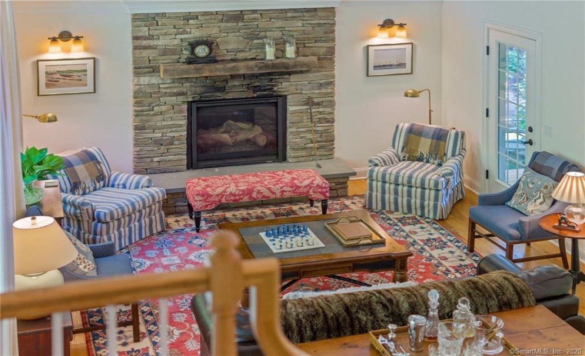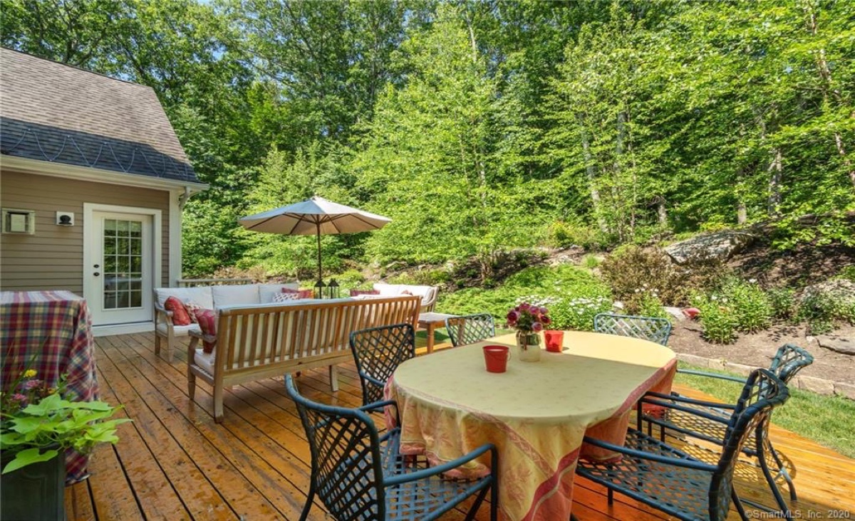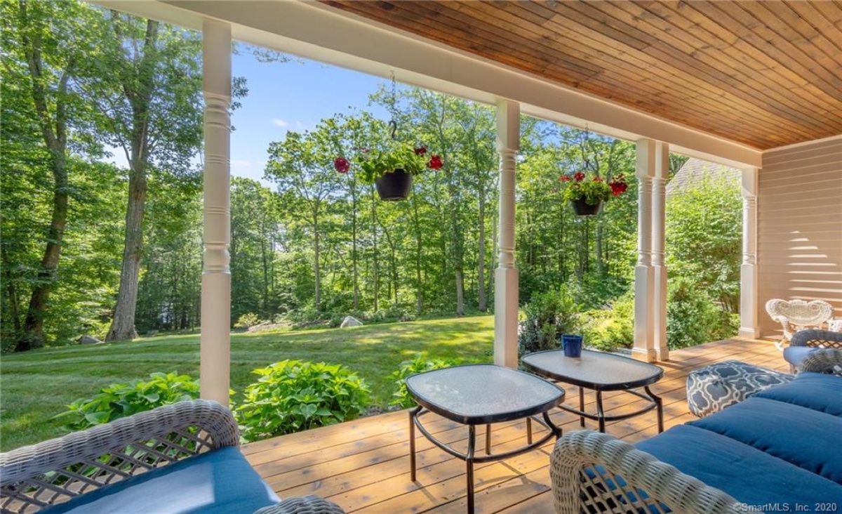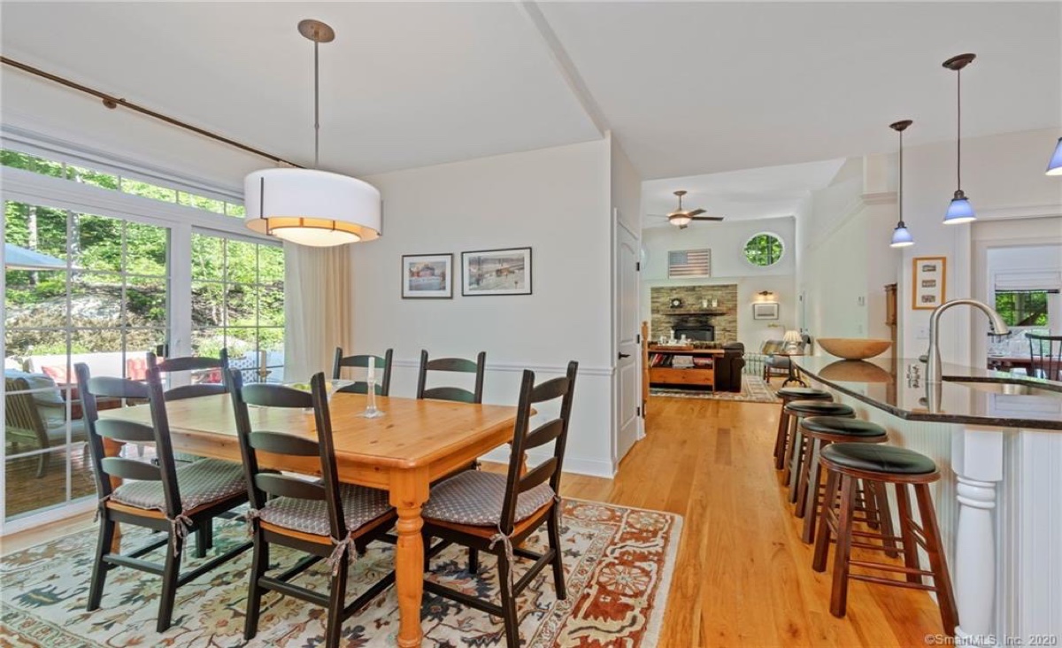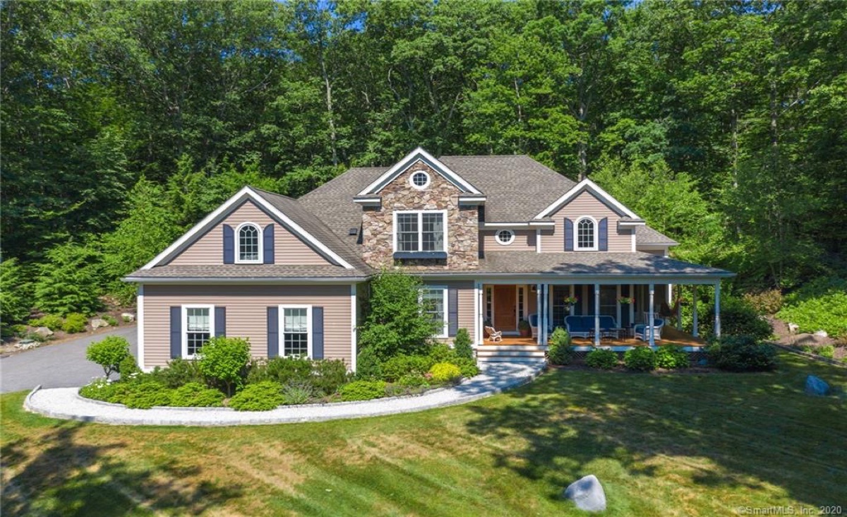 This four-bedroom, two-bathroom Goshen country home comes with all the benefits offered by Woodridge Lake. The main living area includes hardwood floors, a designer kitchen, a separate breakfast area that opens out to the back deck, a grand living room with a fieldstone gas fireplace, a separate dining room facing the lake, and a den/office. On the first level is a master bedroom suite with walk-in closets. Set on a hill with a professionally landscaped yard and perennial gardens, the home features a wraparound front porch and an expansive back deck. The property is just across the street from West Beach, which offers swimming and kayaking Listed at $779,000 by E. J. Murphy Realty.