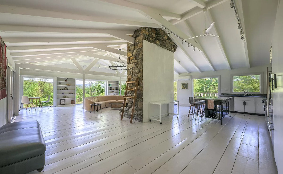 With frontage on the Konkapot River, this one-level home in Sheffield features a large deck from which to enjoy its fabulous surroundings. There are three bedrooms and two bathrooms, an open kitchen with soapstone countertops as well as a great room with an impressive stone fireplace and radiant-heated floors. Listed at $1,300,000 by Berkshire Property Agents.