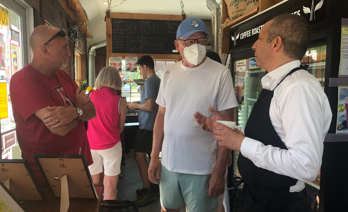 The little yellow cottage at 200 Main Street that is Flying Church Coffee looks like it’s been a Great Barrington landmark forever, but that’s by design. Joffe “purpose built” it to house his coffee emporium, which officially opened July 9. It’s just big enough for people to chat a bit as they wait for their orders to come up. And by chatting, we mean engaging with Joffe, who is happy to tell you that he began roasting his own blend of dark roast coffee to keep his Columbian wife happy. “I was very lucky to meet my wife,” he says. “I want to keep her forever, and I figured if I made her really good coffee, she’d have to stick around.”