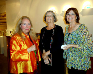 Hana Rosol, whose husband's work is in the gallery, with glass artist Robin Grebe, whose work is also on display; Stanley Wooley of Schantz Gallery, with Susan Baker of Art New England, and her sister, Gail Baker.