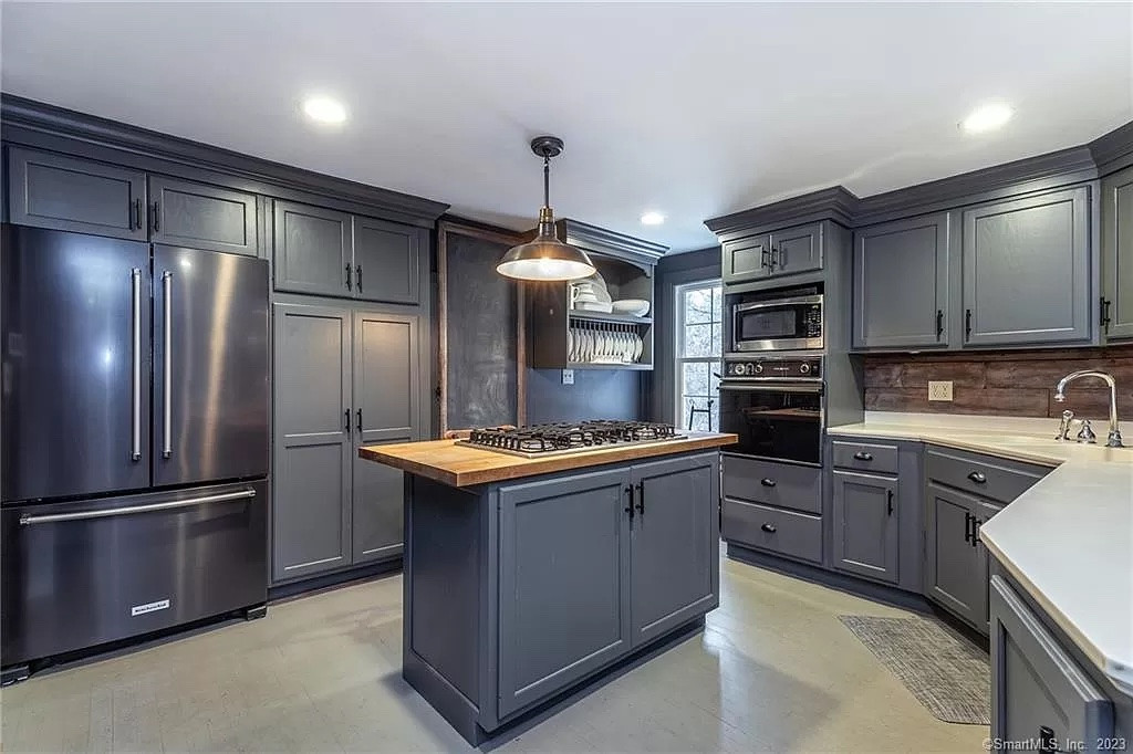 In Cornwall, a circa 1818 home is located in Cornwall on a quiet secondary road. It offers three bedrooms and two bathrooms. Its 3.79 acres feature heirloom stone walls and three outbuidlings including a barn with concrete floor. The property is sited beside Mohwak State Forest and its miles of trails. Listed at $775,000 by Klem Real Estate.