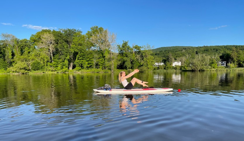 Join Body Be Well Pilates in a class combining Pilates with stand-up paddleboarding on a placid tributary of the Hudson River.