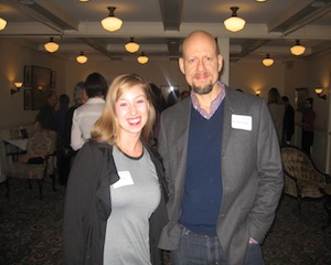 Rachel Louchen reports from Stockbridge. It was as if every business in the Berkshires (and beyond) was represented on Tuesday, February 25 for Jacob's Pillow's Community and Business Partner Event, hosted by the Red Lion Inn. Business owners, local area real estate professionals and Jacob's Pillow Board of Directors members filled the room, proving once again what an important and venerable organization Jacob's Pillow truly is. Addressing the crowd, General Manager Connie Chin spoke of how the festival helped local businesses such as lodging and restaurants bring in more than 90,000 attendees for last year's festival, with the upcoming season on track to break the previous years' records. Last night's packed party is an indication of the community support for the Pillow and offered assurance that the festival will long dance on. Above, Berkshire Money Management President Allen Harris with Connie Chin.