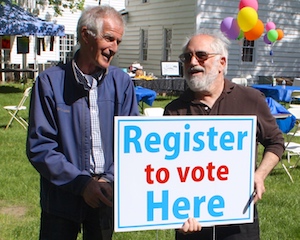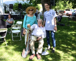 Jamie Larson reports from Pine Plains. The Pine Plains Memorial Hall was once a huge part of the town's history. On Saturday, May 20, a day full of activities brought the community out to celebrate the groundbreaking of the long awaited restoration of the vacant town icon. The original Memorial Hall was constructed in 1915, but today the big brick building, its tall windows, crown of dormers and the grand theater inside are, admittedly, in rough shape. The mission of the renewal effort is to bring together the community and foster economic development in Northern Dutchess County and surrounding areas. With this restoration, the hall will be a vital part of the town's future; plans are to make it a regional center for community-based civic and social programs, agriculture and arts education, cultural performances and a starting point for local charitable organizations. Now in its second year of a five-year planning, capital fundraising and construction cycle, there's enough money to begin the first phase of the project. The man who got the ball rolling, PPMH President Jack Banning, said they're excited for the innumerable possibilities for the venue. "The trick is that this can be done without taking ourselves too seriously," Banning said, pictured at left with board secretary Hollis Bart.