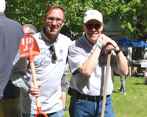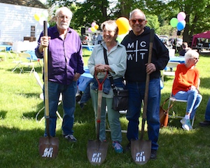 The large assembled crowd cheered, "We dig Pine Plains!" as they ceremoniously shoveled out chunks of the Memorial Hall's front lawn.