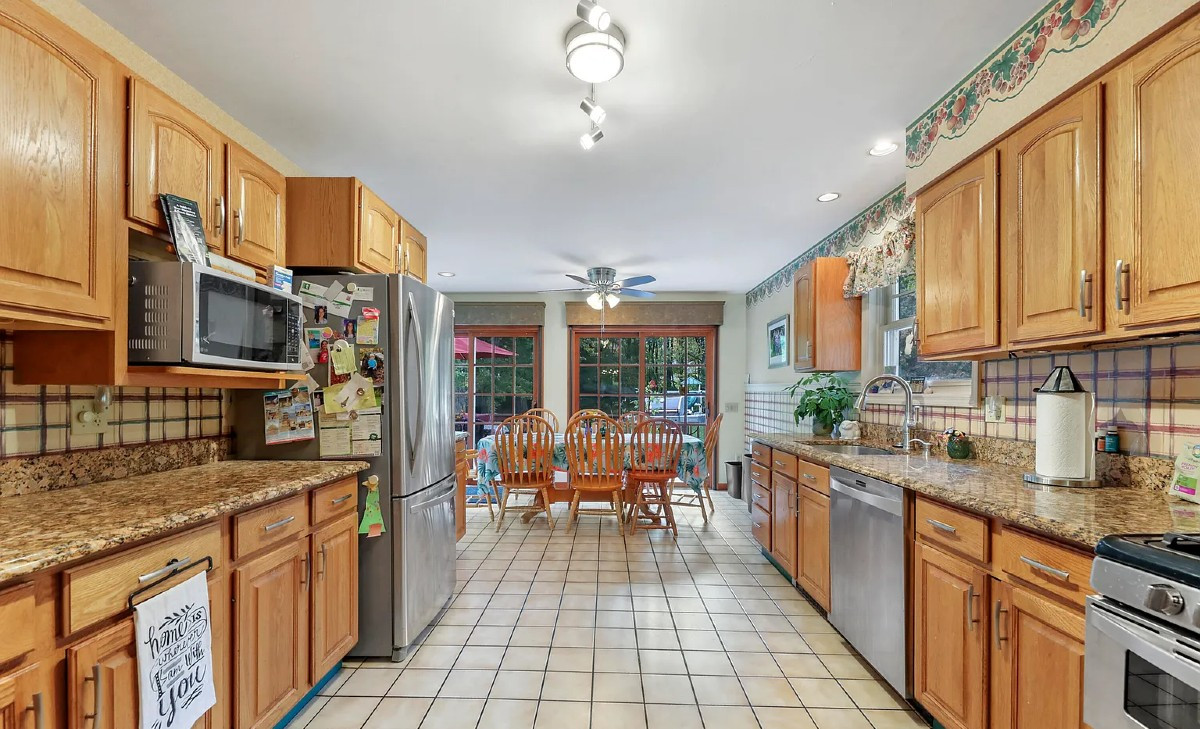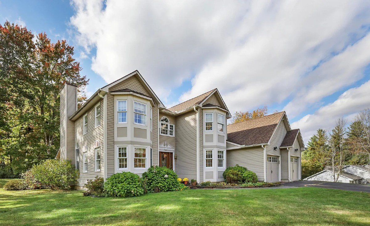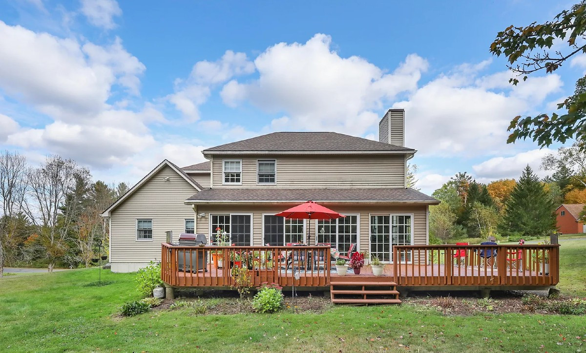 In Pittsfield, this Contemporary features five bedrooms and five bathrooms. A wide-open entryway leads to an oversized great room with vaulted ceilings and a gas fireplace. The lower level offers a huge rec room with a bar. The large deck off the back looks out over a large backyard that includes a shed and play structure. The home is walking distance to Pittsfield State Forest. Listed at $799,000 by Clark Realty Group.