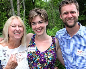 Mary Garnish Bauman reports from Lenox. A barn dance in the Berkshires — that’s what Pleasant Valley Wildlife Sanctuary decided to do for its 7th annual fundraiser on July 18, welcoming 100 guests to celebrate “An Evening in the Woods." The center of the action this year was Pleasant Valley’s historic barn, where the band Spare Parts, featuring noted fiddler George Wilson, inspired dancers to take to the floor. Caller Paul Rosenberg instructed in contra-dancing and other barn-appropriate styles. Before all the high-stepping and whirling about, guests enjoyed delicious tacos and flautas from local eatery Baja Charlie’s, libations from Kelly’s Package Store and ice cream from SoCo Creamery while bidding on silent auction items. Giant butterfly kites, colorful flags and wooden sculptures from Asia Barong adorned the tents. Robert Harrison, event sponsor and former board member, welcomed guests, and Berkshire Sanctuaries director Becky Cushing (above right, with Candice Ferrell) expressed gratitude for the generosity of the community in supporting Mass Audubon’s regional education programs for people of all ages. Gary Clayton, acting president for Mass Audubon statewide, elucidated the importance of the Berkshire Sanctuaries in a statewide context – and then kicked off the celebration. Photos by Susan Geller.