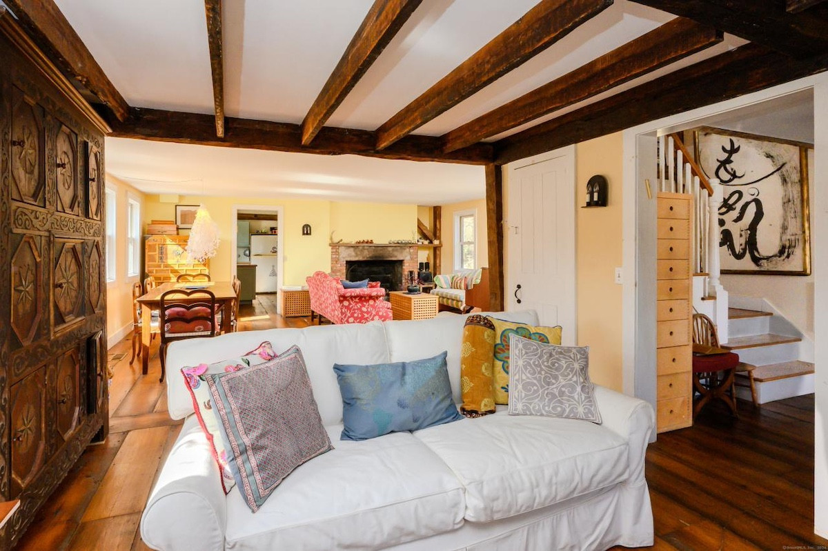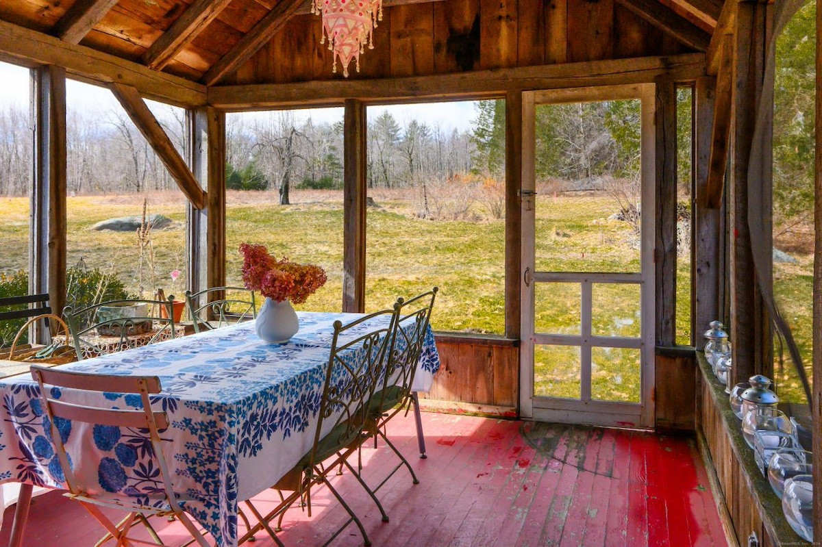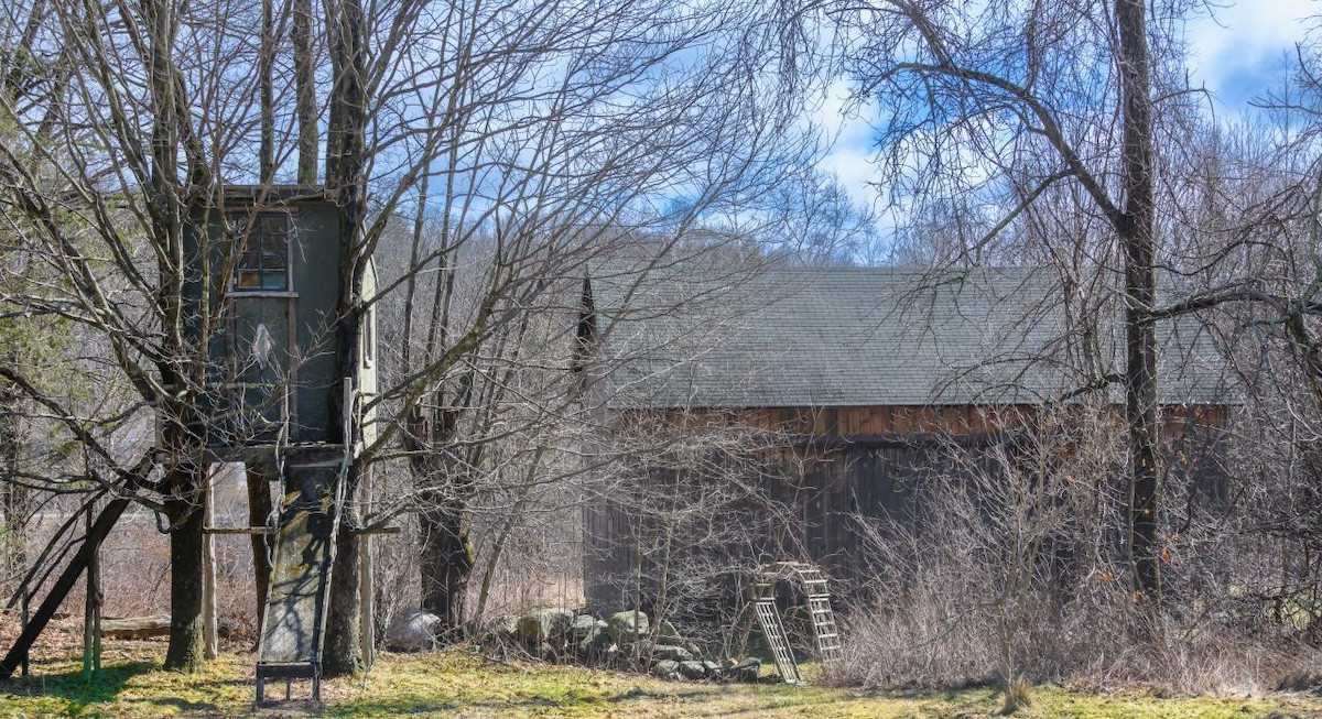 A winding driveway in Cornwall takes you to an antique home with rustic charm and and an open floor plan. it has three bedrooms and two bathrooms. The barn could be restored into a studio, pool house or entertaining space. Bonus: a whimical treehouse is included. Listed at $850,000 by Bain Real Estate.