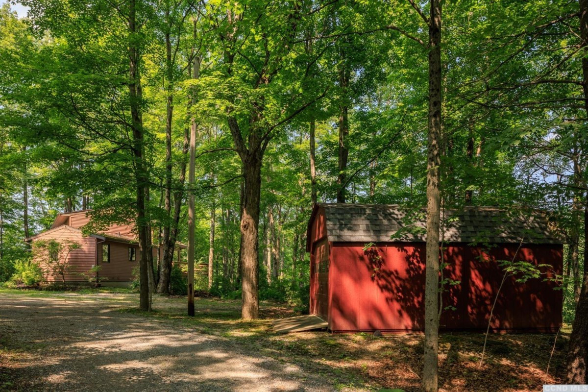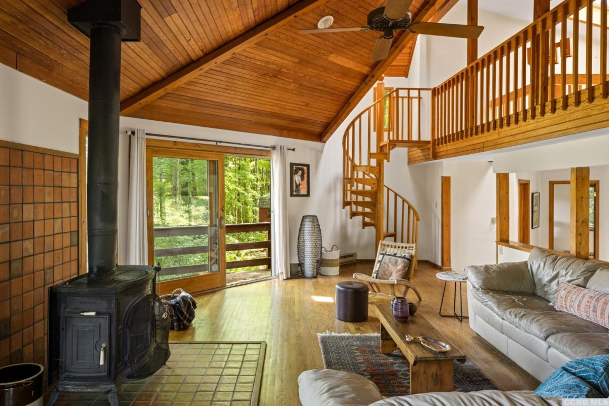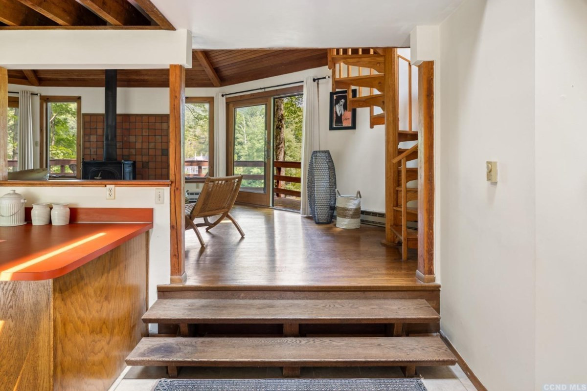 Set on its very own 7.5-acre nature preserve, this late Mid-Century Contemporary offers three bedrooms and four bathrooms, and an open kitchen and living room. A separate small barn could be a workshop, garden shed, or single car garage. Large walkout basement has high ceiling and could be finished for addtional square footage. Listed at $499,000 by Houlihan Lawrence.