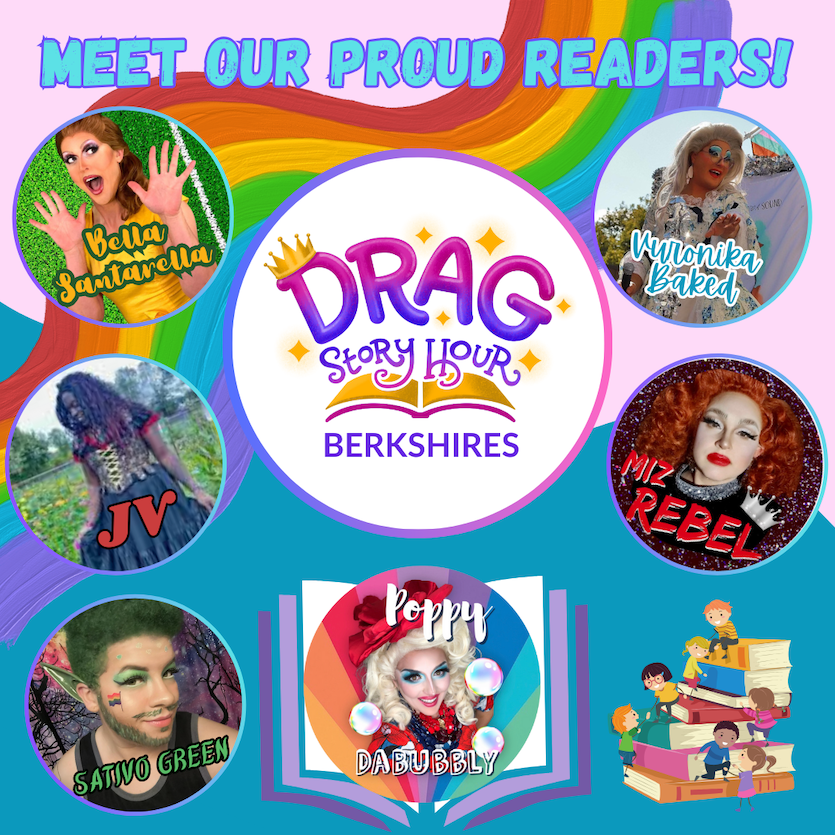 The Berkshire Chapter’s debut event will be held at the Berkshire Pride Office in Pittsfield (34 Depot St.) on Saturday, March 2, from 2-4 p.m., the first day of Read Across America Week. The free celebration will include appearances by local drag royalty Bella Santarella, Vuronika Baked, JV, Miz Rebel, and Sativo Green, as well as crafts, games, and a family dance party. Every child who attends will receive a free book to take home.