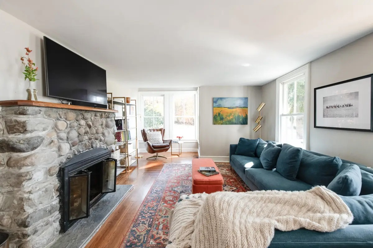 Built in 1864, the Italianate-style home retains original details: plaster moldings, medallions and pine floors. It has four bedrooms and two bathrooms, a renovated kitchen, stone fireplace in the living room, and a parlor with high ceilings and pocket doors. Outside are two porches and mature plantings and fruit trees, as well as a new pool. Listed at $675,000 by Houlihan Lawrence.
