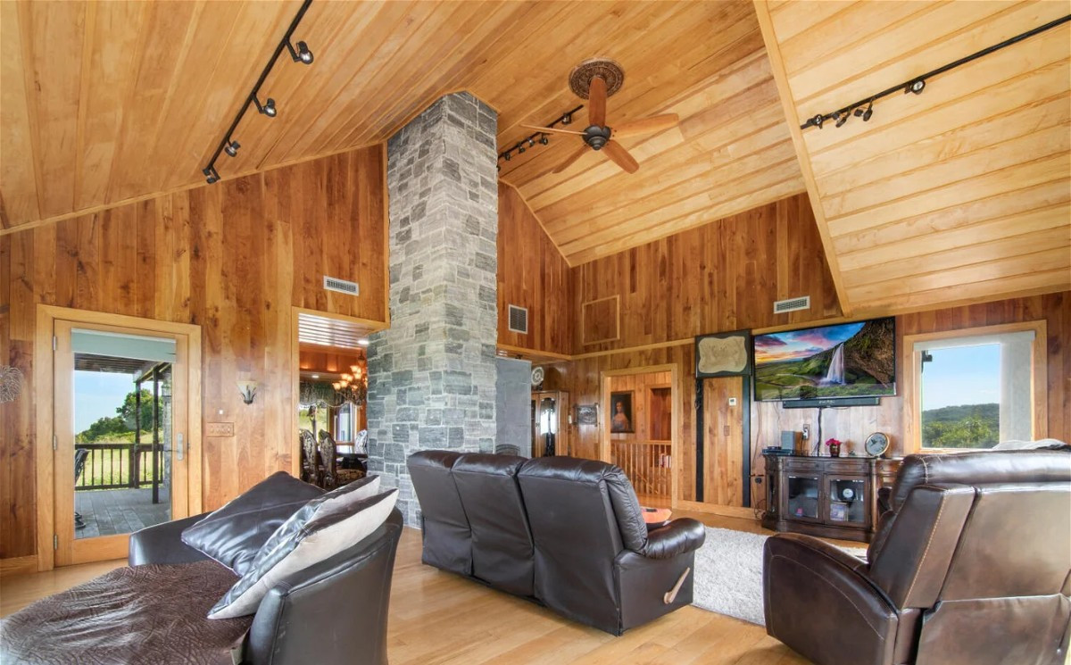 A spectacular custom stone retreat on 108 acres in Gallatin lets you see into the Berkshires and Catskills. This land is subdividable, but the main house has four bedrooms and three bathrooms. A large barn waits to be turned into additional iving space or studio. The property boasts a stocked pond, rolling meadows with fruit trees, forest, and open fields. Listed at $2,200,000 by Venture Realty Partners.