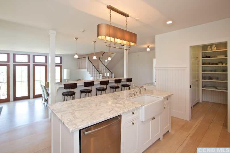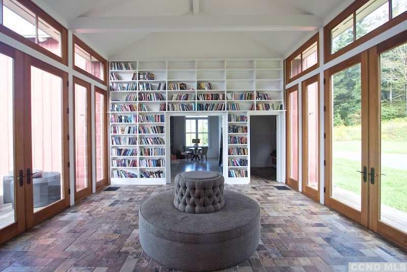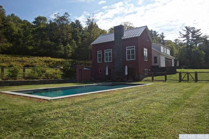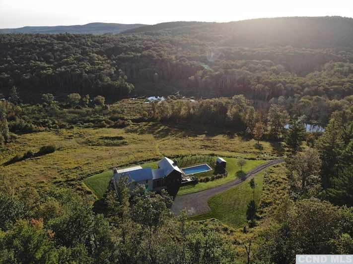 Listing describes this Austerlitz listing as "a well-done representation of modern build and the warmth of a renovated barn." It was designed by AIA award-winning architect Dennis Wedlick. The house has five bedrooms and six bathrooms, a large kitchen with an oversized marble-top island and pantry, and great room with soaring ceilings. There are indoor and outdoor fireplaces, a pool, ponds, and streams. Listed at $2,200,000 by Gabel Real Estate.